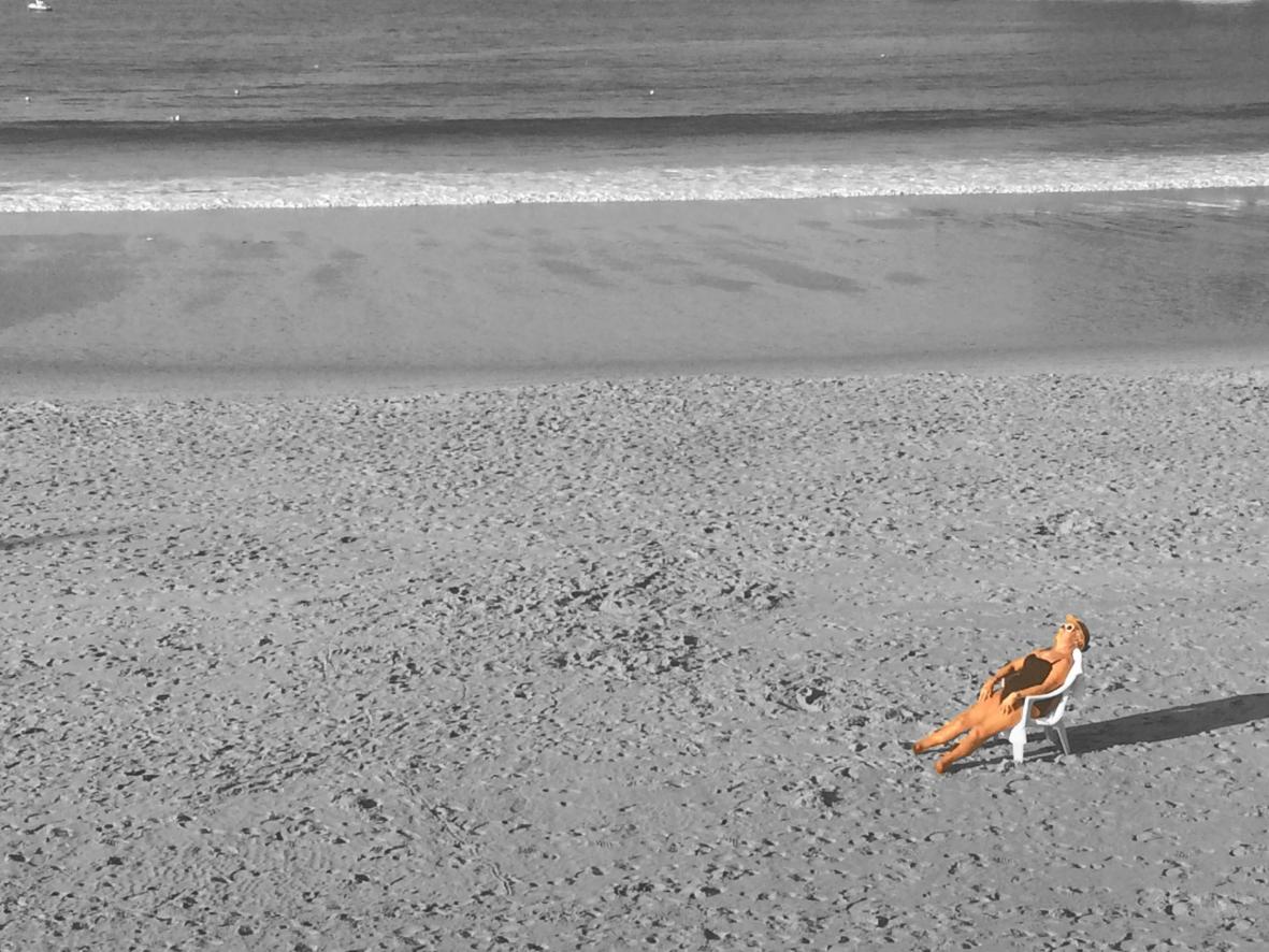 We found this photograph inspiring... As if one could sunbathe on the moon and only the woman's body would be affected by the sun that was coloring it. We can see her feet still grey, belonging to that cold lunar space. We don't know if she was in that warm colour and the icy lunar beach is taking hold of her turning her into grey, or if everything was black and white and the sun has been painting her with its warmth and has not yet reached her feet which will soon also be filled with warmth.