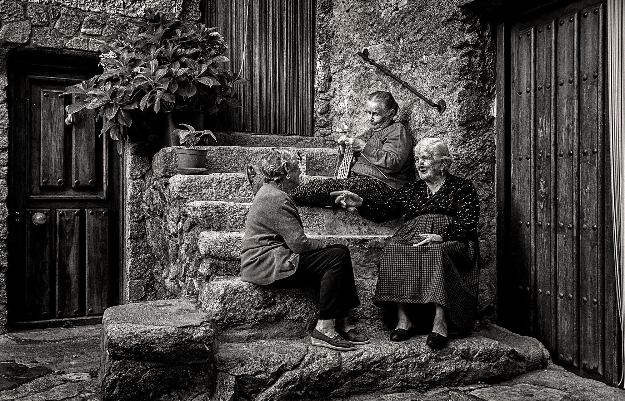 Grupo de vecinas,ya abuelitas que como cada tarde salen a contar los chismes al descansillo.