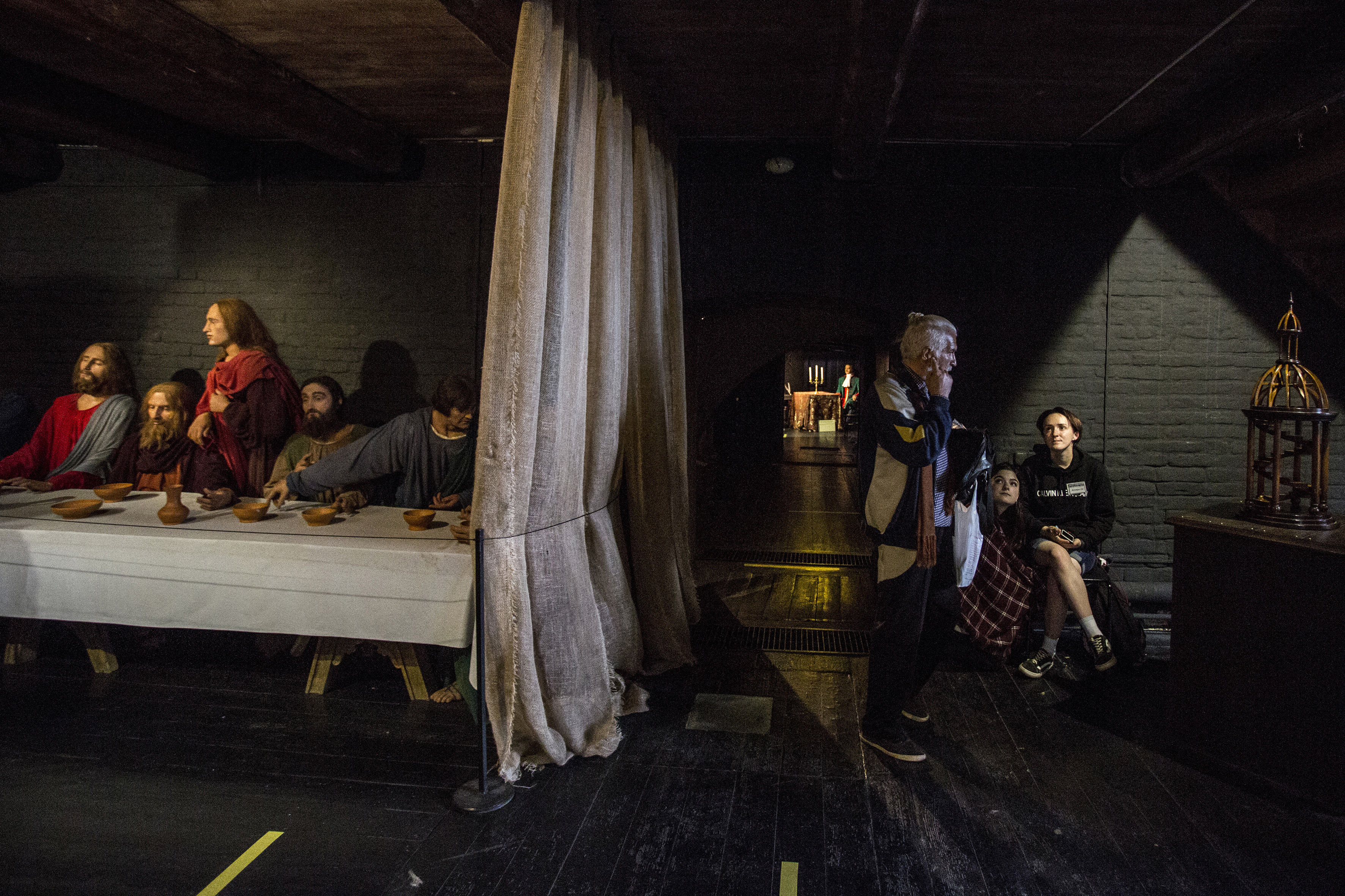 Visitor to the exhibition Secrets of Da Vinci in the Peter and Paul Fortress of St. Petersburg