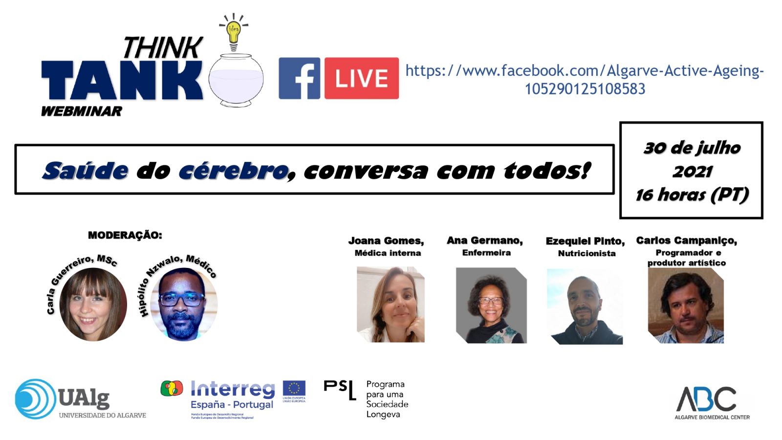 Este Think Tank será retransmitido en directo a través del Facebook de Algarve Active Ageing, a las 16h00 hora portuguesa.