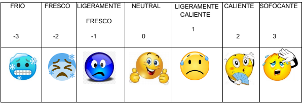 Para facilitar determinar tanto la Sensación Térmica, la Aceptabilidad y la Preferencia térmica se utilizaron fichas con imágenes tales como las que se muestran a continuación.