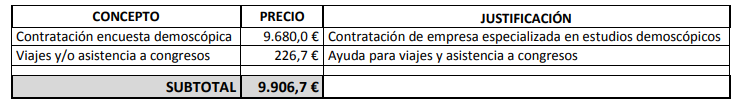 Debido a los retrasos ajenos a nuestra voluntad que ya han sido comentados en apartados anteriores y que han producido un retraso para el inicio del estudio, en el momento actual solo se ha ejecutado una pequeña parte del presupuesto de MADRID+90. En concreto, los conceptos que se han ejecutado son los siguientes: