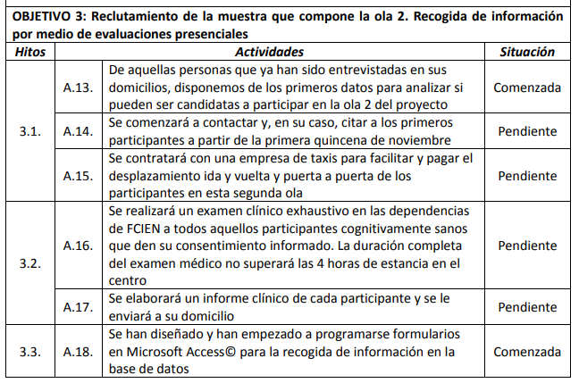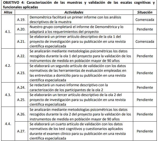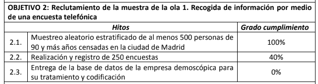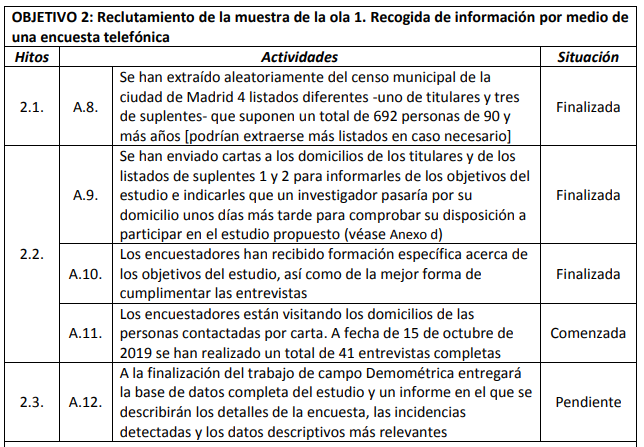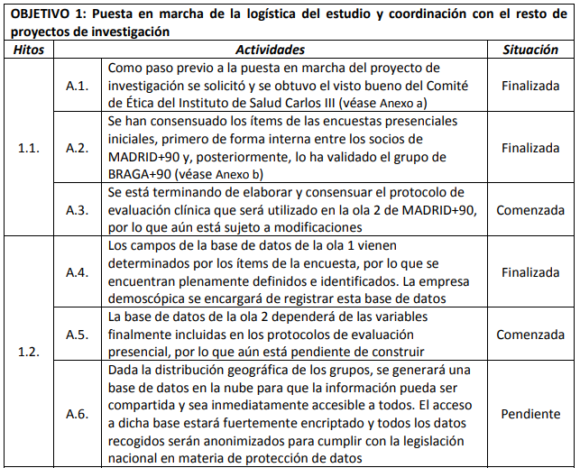 1. Obtención de una muestra representativa de personas mayores de 90 años, que permitan la generalización de los resultados obtenidos. Este punto es realmente innovador en comparación con otros estudios similares a MADRID+90.